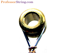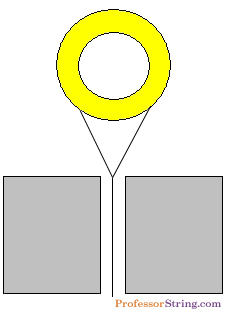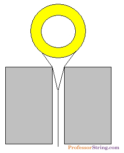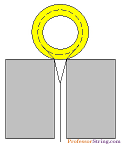 In this illustration, again we are seeing a cross sectional view of the bridge or tailpiece. In this design, the string channel is much narrower. The loop is about to touch the bridge, before full tension is reached. In this situation, the loop is not going to be floating.