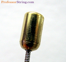 As the string is tensioned to a tuned state, the loop begins to compress. The compressing of the loop makes the ball-end want to spring back against the string. We call this the Spring Effect. It effects the tuning of the string.