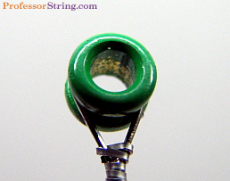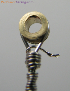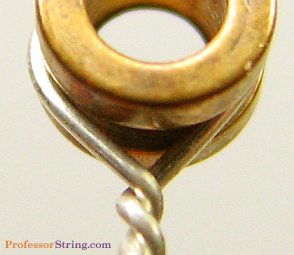 Once the string is fully tuned, the ball seats against the bridge. At the same time, the loop retains its Spring Effect. In some cases the Spring Effect is so strong; the ball never anchors to the bridge.